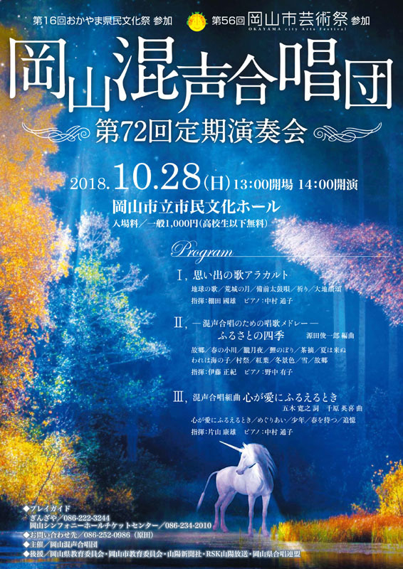 | 10月28日(日) | 第72回定期演奏会を開催(岡山市立市民文化ホール) |