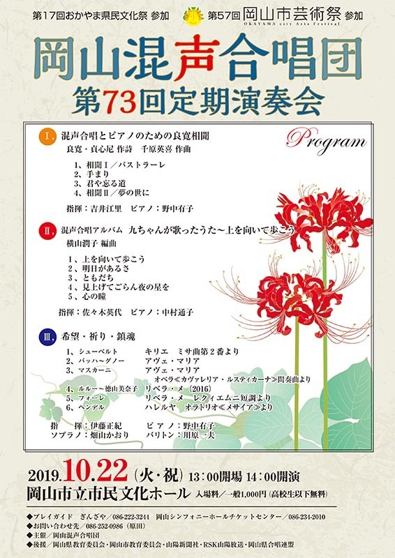| 10月8日(土) | 東日本大震災復興応援合唱コンサート(岡山市民文化ホール) |