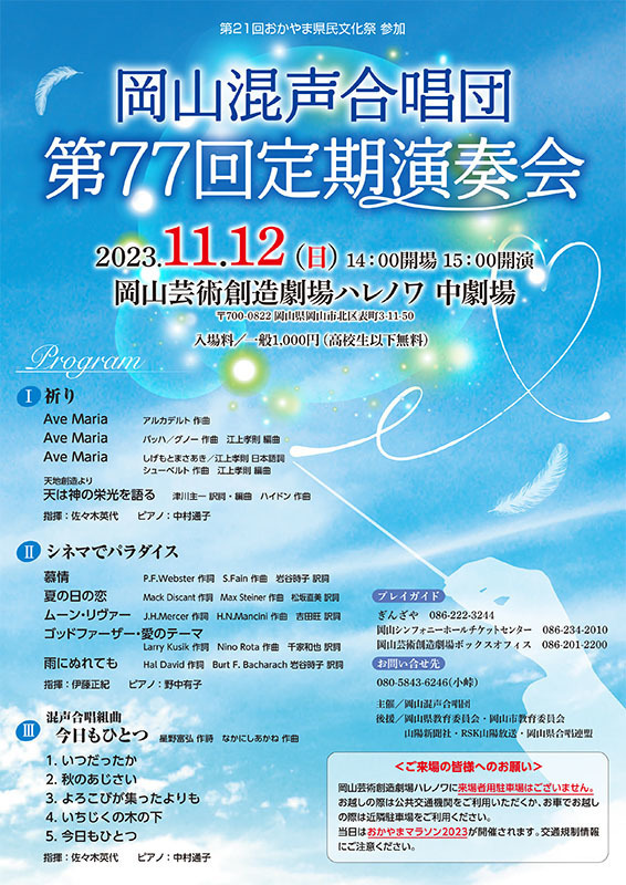 | 11月12日(日) | 第77回定期演奏会(岡山芸術創造劇場ハレノワ)